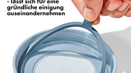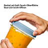 Der Soft-Touch-Drehdeckel mit herausnehmbarer Dichtung sorgt für eine luftdichte Versiegelung.