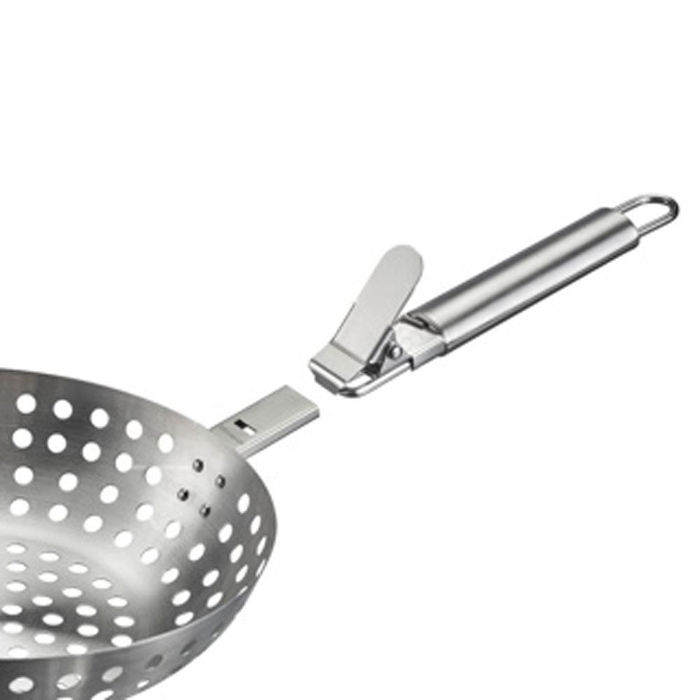 Mit dem schicken Grillwok lassen sich größere Mengen an leckerem Grillgemüse für die nächste Gartenparty schnell und einfach zubereiten.