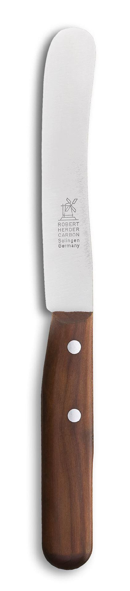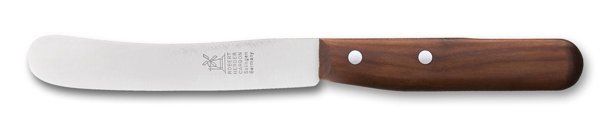 Die breite, sorgfältig handgepließtete Klinge macht es ebenso geeignet zum Schneiden von Brot und Brötchen sowie Käse und Salami, wie auch zum Streichen von Butter und Aufstrichen.
