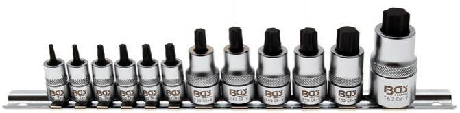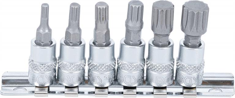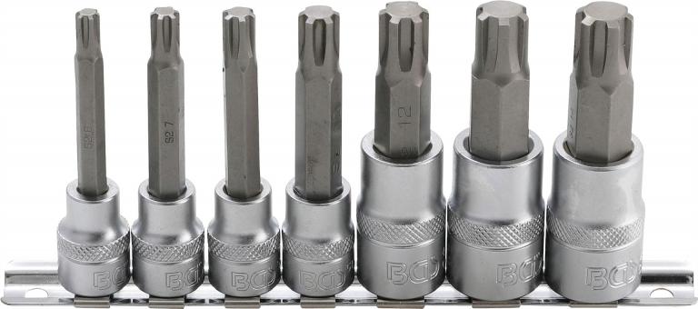 mit Rändelung, auf Metallschiene Lieferumfang: Bit-Einsätze, Antrieb Innenvierkant 6,3 mm (1/4"), Abtrieb Innenvielzahn (für XZN) M4 - M5 - M6 Bit-Einsätze, Antrieb Innenvierkant 10 mm (3/8"), Abtrieb Innenvielzahn (für XZN) M8 - M10 - M12 Bit-Einsätze, Antrieb Innenvierkant 12,5 mm (1/2"), Abtrieb Innenvielzahn (für XZN) M14 - M16