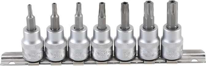 mit Rändelung, auf Metallschiene, Größen: T15 - T20 - T25 - T30 - T40 - T45 - T50, Oberflächenvergütung: verchromt, matt1/6 Einlage Marke: BGS technicqqr ...