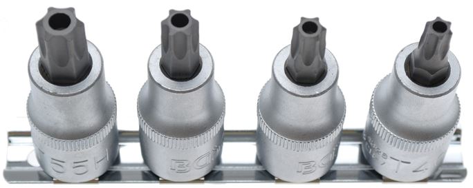 mit Rändelung Bit-Einsätze, Antrieb Innenvierkant 12,5 mm (1/2"), Abtrieb T-Profil (für Torx) mit Bohrung: T40 - T45 - T50 - T55Oberflächenvergütung: verchromt, matt