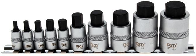mit Rändelungauf Metallschiene Bit-Einsätze, Länge 30 mm, Antrieb Innenvierkant 6,3 mm (1/4"), Abtrieb Innensechskant 4 - 5 - 6 - 7 - 8 mmBit-Einsätze, Länge 38 mm, Antrieb Innenvierkant 10 mm (3/8"), Abtrieb Innensechskant 10 - 12 - 14 mmBit-Einsätze, Länge 48 mm, Antrieb Innenvierkant 12,5 mm (1/2"), Abtrieb Innensechskant 17 - 19 mmOberflächenvergütung: verchromt, mattChrom-Vanadium-Stahl