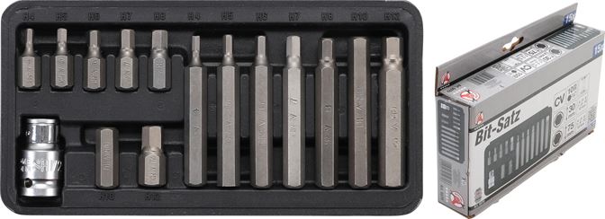 Bits, kurz, 30 mm, Innensechskant 4 - 5 - 6 - 7 - 8 - 10 - 12 mmBits, lang, 75 mm, Innensechskant 4 - 5 - 6 - 7 - 8 - 10 - 12 mmAdapter, Antrieb 12,5 mm (1/2")
