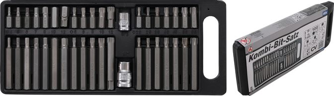 in KunststoffkofferBit-Adapter mit Haltekugel, Antrieb Innenvierkant 12,5 mm (1/2"), Abtrieb Innensechskant 10 mm (3/8")Bit-Adapter mit Haltekugel, Antrieb Innenvierkant 10 mm (3/8"), Abtrieb Innensechskant 10 mm (3/8")Bits, Länge 30 mm Antrieb Außensechskant 10 mm (3/8"), Abtrieb Innensechskant: 4 - 5 - 6 - 7 - 8 - 10 - 12 mmBits, Länge 75 mm Antrieb Außensechskant 10 mm (3/8"), Abtrieb Innensechskant: 4 - 5 - 6 - 7 - 8 - 10 - 12 mmBits, Länge 30 mm Antrieb Außensechskant 10 mm (3/8"), Abtrieb T-Profil (für Torx): T20 - T25 - T30 - T40 - T45 - T50 - T55Bits, Länge 75 mm Antrieb Außensechskant 10 mm (3/8"), Abtrieb T-Profil (für Torx): T20 - T25 - T30 - T40 - T45 - T50 - T55Bits, Länge 30 mm Antrieb Außensechskant 10 mm (3/8"), Abtrieb Innenvielzahn (für XZN) M5 - M6 - M8 - M10 - M12Bits, Länge 75 mm Antrieb Außensechskant 10 mm (3/8"), Abtrieb Innenvielzahn (für XZN) M5 - M6 - M8 - M10 - M12