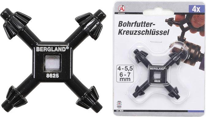 für die meisten Zahnkranzbohrfutter, passend für z.B. AEG, Bosch, Skil, Black & Decker, Makita, Milwaukee uvm., Zapfen-Ø 4 - 5,5 - 6 - 7 mm Marke: BGS do it yourself BGS ...