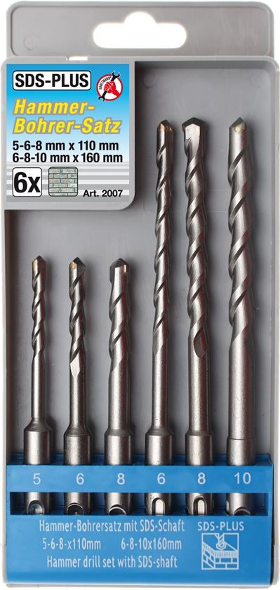 in Kunststoff-KassetteHammerbohrer Ø 5 mm, 110 mmHammerbohrer Ø 6 mm, 110 mmHammerbohrer Ø 8 mm, 110 mmHammerbohrer Ø 6 mm, 160 mmHammerbohrer Ø 8 mm, 160 mmHammerbohrer Ø 10 mm, 160 mm