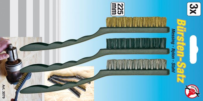 mit schwarzem Kunststoffgriff1 Messingbürste1 Nylonbürste1 Stahlbürste Länge: 225 mm