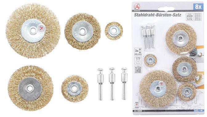 Stahldraht-Bürsten-Satz | Ø 25 - 75 mm | 8-tlg.