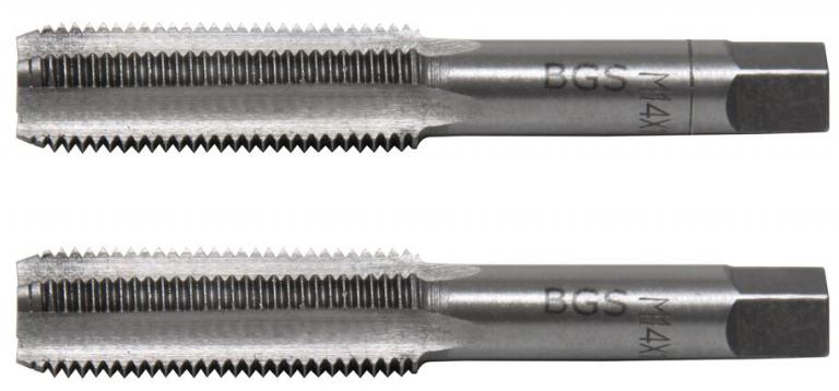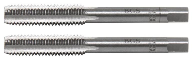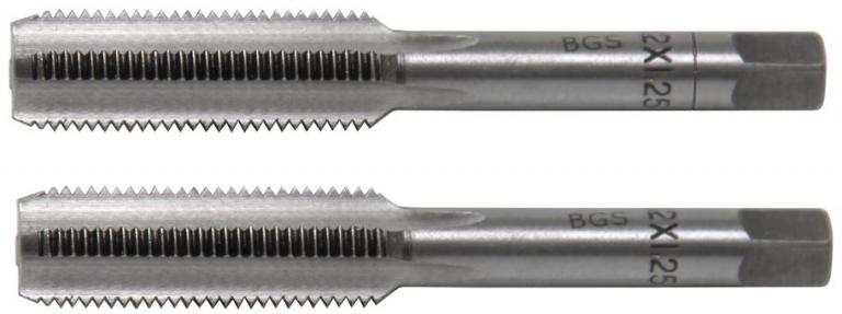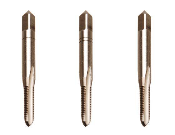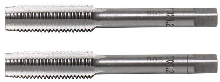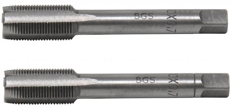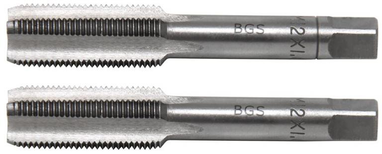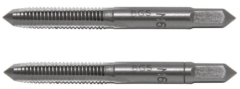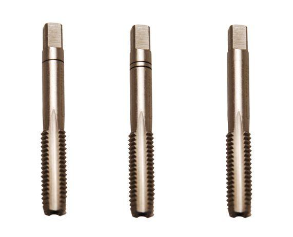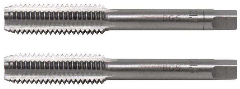 je 7 Gewindebohrer (DIN 352) jeweils Vorschneider, Mittelschneider und Fertigschneider M3 x 0.5 - M4 x 0.7 - M5 x 0.8 - M6 x 1.0 - M8 x 1.25 - M10 x 1.5 - M12 x 1.75, 7 Schneideisen (DIN ...