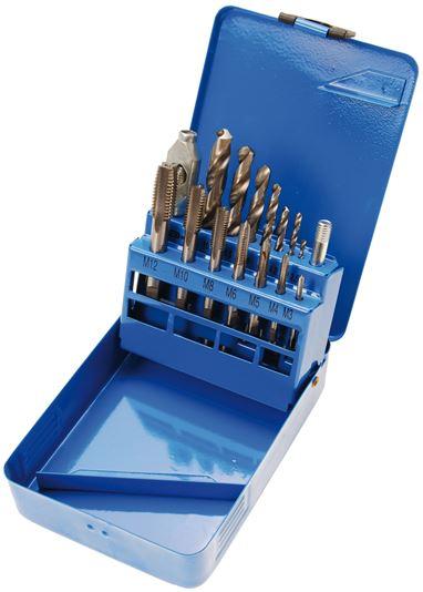 in Metallkassette, ermöglicht die Reparatur von Gewindebohrungen, minimiert Zeit- und Kostenaufwand, 5 Spiralbohrer zum Aufbohren der defekten Gewinde, 5 Gewindebohrerpp ...