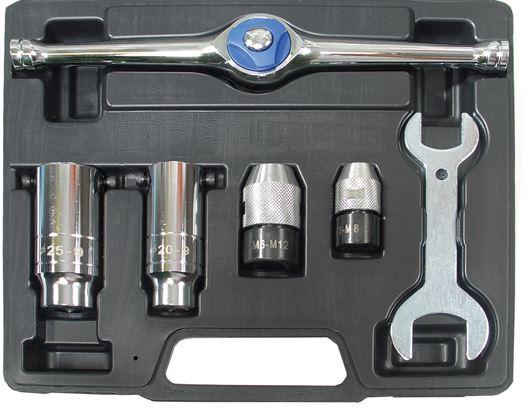 zum Nachschneiden von Radmuttern und Schrauben, durch Spezialhalter auch an eingebauten Radbolzen direkt am Fahrzeug verwendbar, Gewindebohrer M12 x 1,25 - M12 x 1,50 - M14 x 1,50p ...
