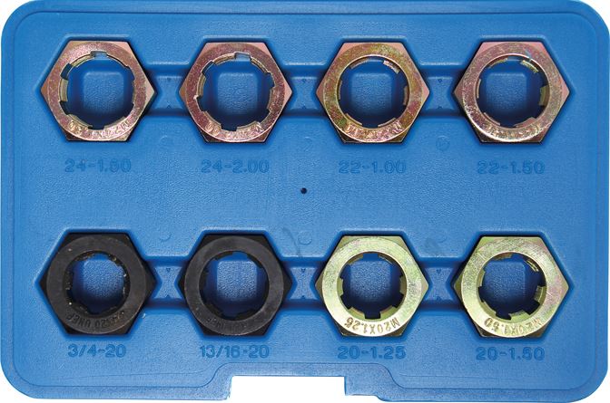 zum Nachschneiden und Reinigen von AußengewindenBetätigung direkt am Außen-Sechskant ohne SchneideisenanhalterFarbcodierung metrisch / ZollSchneidmutter 13/16" x 20 UNEFSchneidmutter 3/4" x 20 UNEF Schneidmutter M24 x 1,50 mmSchneidmutter M24 x 2,00 mm Schneidmutter M22 x 1,00 mmSchneidmutter M22 x 1,50 mmSchneidmutter M20 x 1,50 mmSchneidmutter M20 x 1,25 mm