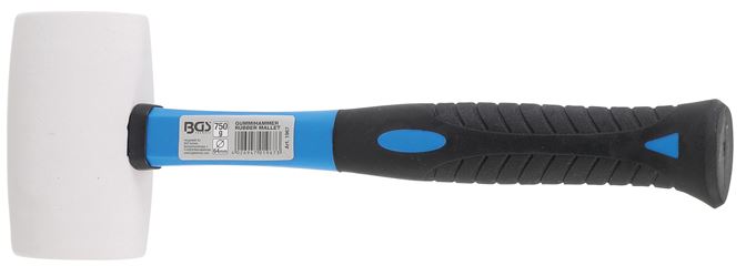 aus weißem Naturkautschuk, färbt nicht ab, Material Stiel: Fiberglas, Durchmesser Hammerkopf: 64 mm, Kopfgewicht: 750 g Marke: BGS technic BGS-Nr.: 1967