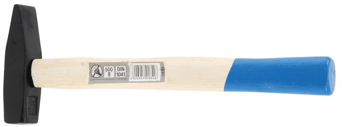 geschmiedetschwarz lackiertmit geschweiftem Holzstielmit MetallkeilDIN 1041Kopfgewicht: 500 g