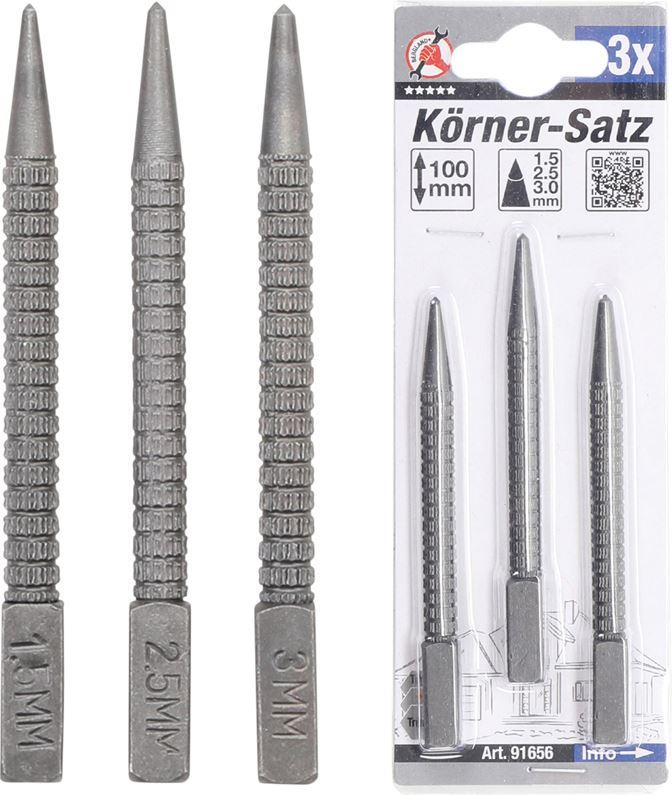 gehärtet, Schaft lackiert, Größen: 1,5 - 2,5 - 3 mm, Länge: 100 mm, mit gerändeltem Griff, für besseren Halt Marke: BGS do it yourself BGS-Nr.: 91656