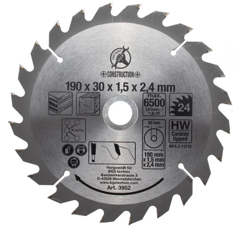 MPA zertifiziert, Bohrungsadapter 30 auf 20 mm, Zähne aus Hartmetall, Drehzahl max.: 6500 U/min, Durchmesser: 190 mm, Bohrungsdurchmesser: 30 mm, Stärke Säge ...