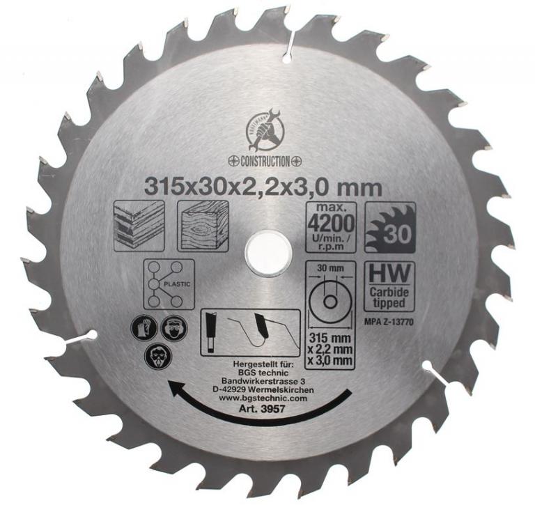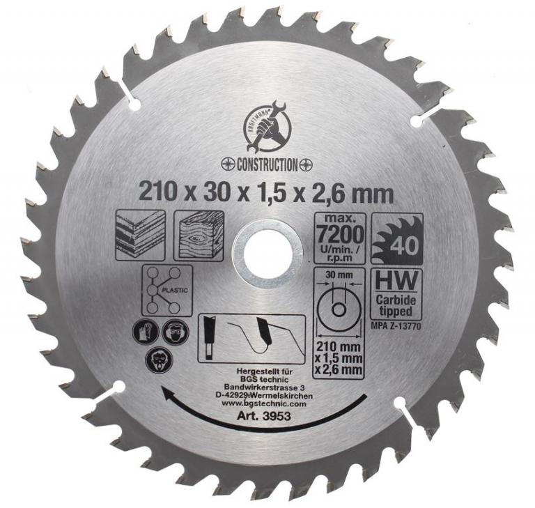 MPA zertifiziert, Bohrungsadapter 30 auf 20 mm, Zähne aus Hartmetall, Drehzahl max.: 7200 U/min, Durchmesser: 210 mm, Bohrungsdurchmesser: 30 mm, Stärke Säge ...