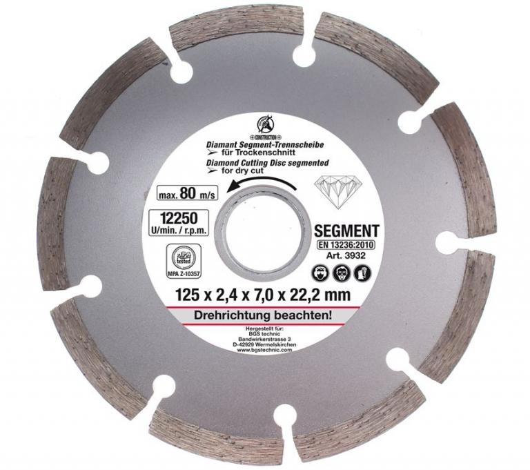 für Baumaterialien, für Trockenschnitt, MPA zertifiziert, Durchmesser: 115 mm, Bohrungsdurchmesser: 22,2 mm, Segmenthöhe: 5 mm, Schnittbreite: 1,9 mmq ...