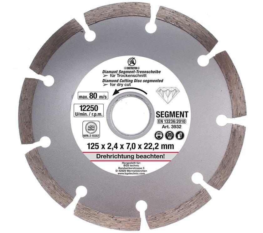 für Baumaterialien, für Trockenschnitt, MPA zertifiziert, Durchmesser: 125 mm Marke: BGS do it yourself BGS-Nr.: 3932