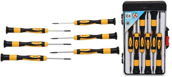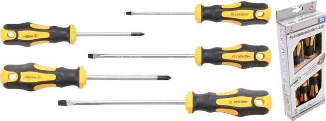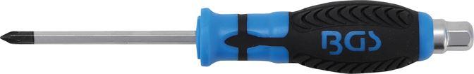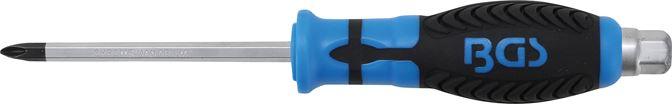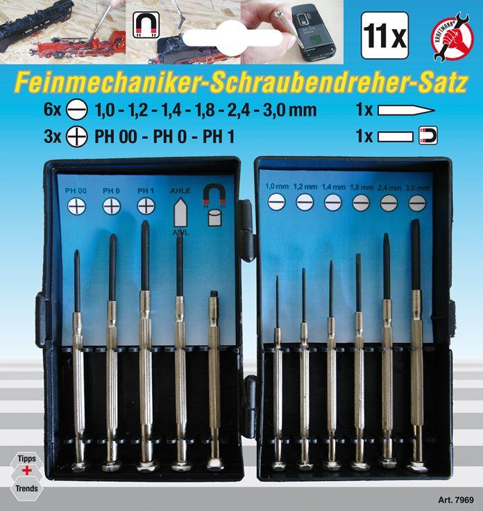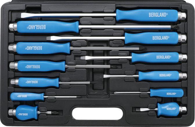 kompakter 14-teiliger Bit-Schraubendreher Satz mit Magnet und Gelenk im Handgriff integriertes und versenkbares 12-teiliges Bit-Magazin mit einem magnetischem Bithalter, Antrieb Außensechskant 6,3 mm (1/4") 180° Grad Schwenkmechanismus der Ratsche ermöglicht das Arbeiten an schwer zugänglichen Verbindungselementen Ratschenkopf in 5 Positionen arretierbar mit 3-stufiger Ratschenfunktion, umschaltbar rechts/links oder arretierbar in Mittelstellung zur Verwendung als normaler Schraubendreher intelligentes Farbleitsystem für die Bits, jedem Profil ist eine Farbe zugeordnet Sichtmöglichkeit am Handgriff auf den innenliegenden Bithalter aus Kunststoff Entnahme des Bit-Magazins durch entfernen des Schraubverschlusses an der Rückseite die Bits lassen sich einfach aus dem passenden Gummihalter entnehmen und können nach Belieben getauscht werden ergonomischer 2-Komponenten Handgriff aus Polypropylen (PP) und thermoplastischem Kunststoff (TPR) Material: Werkzeugstahl Material Bits: Chrom-Vanadium-Stahl (S2) Lieferumfang: 1 Gelenk-Schraubendreher, mit Ratschen-Drehgriff, umschaltbar, Abtrieb Außensechskant 6,3 mm (1/4") 3 Bits, Antrieb Außensechskant 6,3 mm (1/4"), Kreuzschlitz PH1 - PH2 - PH3, Länge 25 mm 3 Bits, Antrieb Außensechskant 6,3 mm (1/4"), Kreuzschlitz PZ1 - PZ2 - PZ3, Länge 25 mm 2 Bits, Antrieb Außensechskant 6,3 mm (1/4"), Schlitz 4 mm - 6 mm, Länge 25 mm 4 Bits, Antrieb Außensechskant 6,3 mm (1/4"), T-Profil (für Torx) T10 - T15 - T20 - T25, Länge 25 mm 1 Magnetischer Bithalter, Abtrieb Außensechskant 6,3 mm (1/4"), Länge 60 mm