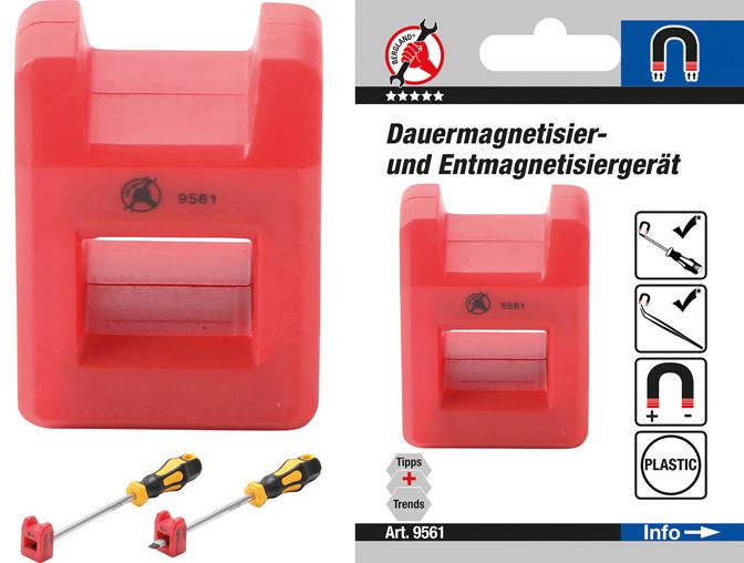 zum Magnetisieren und Entmagnitisieren von Schraubendreherköpfen, Werkzeugen und eisenhaltigen Kleinteilennach Magnetisierung halten Schrauben und andere eisenhaltige Kleinteile problemlos am Werkzeugunkomplizierte Wiederherstellung der Magnetisierung durch mehrfaches Verschieben1/6 Einlage, Chrom-Vanadium-Stahl