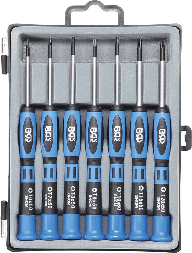 findet überall Verwendung, wo präzises Arbeiten erforderlich ist, wie z.B. im Modellbau, Elektronik usw.Klingenlänge: 50 mmPräzisions-Schraubendreher T-Profil (für Torx): T6 x 50 mm - T7 x 50 mm - T8 x 50 mm - T9 x 50 mm - T10 x 50 mm - T15 x 50 mm - T20 x 50 mm