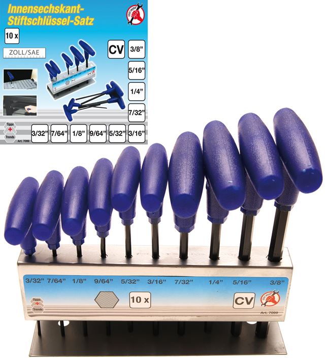 T-Griff, im Ständer, Schraubendreher mit T-Griff, Innensechskant 3/32" - 7/64" - 1/8" - 9/64" - 5/32" - 3/16" - 7/32 - 1/4" - 5/16" - 3/8" Marke: BGS do it yourself BGS ...