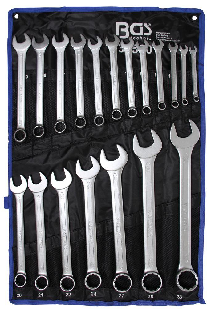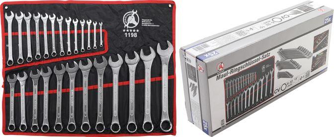 warm geschmiedet verchromt, Köpfe glanzpoliert Ringseite tief gekröpft Abtriebsprofil: Zwölfkant in Tetron-Rolltasche Lieferumfang: Doppel-Ringschlüssel, tief gekröpft: SW 6 x 7 mm Doppel-Ringschlüssel, tief gekröpft: SW 8 x 9 mm Doppel-Ringschlüssel, tief gekröpft: SW 10 x 11 mm Doppel-Ringschlüssel, tief gekröpft: SW 12 x 13 mm Doppel-Ringschlüssel, tief gekröpft: SW 14 x 15 mm Doppel-Ringschlüssel, tief gekröpft: SW 16 x 17 mm Doppel-Ringschlüssel, tief gekröpft: SW 18 x 19 mm Doppel-Ringschlüssel, tief gekröpft: SW 20 x 22 mm Doppel-Ringschlüssel, tief gekröpft: SW 21 x 23 mm Doppel-Ringschlüssel, tief gekröpft: SW 24 x 27 mm Doppel-Ringschlüssel, tief gekröpft: SW 25 x 28 mm Doppel-Ringschlüssel, tief gekröpft: SW 30 x 32 mm