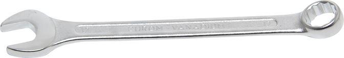 warm geschmiedet, verchromt, Köpfe glanzpoliert, Ringende 15° abgewinkelt, Abtriebsprofil Ringseite: Zwölfkant, Schlüsselweite 1: 17 mm, Schlüsselweite 2: 17 mmqwe ...