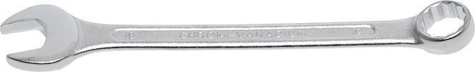warm geschmiedet, verchromt, Köpfe glanzpoliert, Ringende 15° abgewinkelt, Abtriebsprofil Ringseite: Zwölfkant, Schlüsselweite 1: 19 mm, Schlüsselweite 2: 19 mmqwe ...