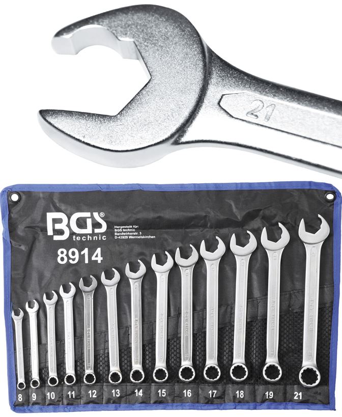 kalt geschmiedetmatt verchromtMaulseite mit Spezialprofil "Ratschenfunktion"Ringende 15° abgewinkeltAbtriebsprofil Ringseite: Zwölfkantin Tetron-RolltascheMaul-Ringschlüssel, Maulseite mit Ratschenfunktion: SW 8 - 9 - 10 - 11 - 12 - 13 - 14 - 15 - 16 - 17 - 18 - 19 - 21 mmChrom-Vanadium-Stahl
