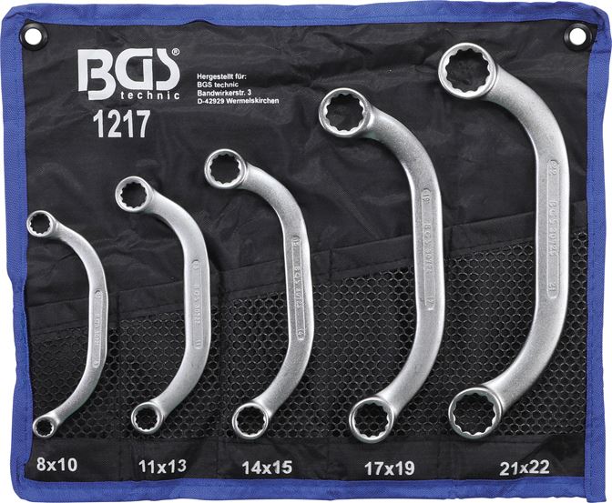 kalt geschmiedetin Tetron-RolltascheStarter und Blockschlüssel SW 8x10 - 11x13 - 14x15 - 17x19 - 21x22 mmOberflächenvergütung: verchromt, mattChrom-Vanadium-Stahl