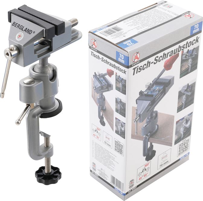 360° drehbar, 45° / 90° schwenkbar, bis Tischstärken bis 50 mm montierbar, Backenbreite 70 mm Marke: BGS do it yourself BGS-Nr.: 93057