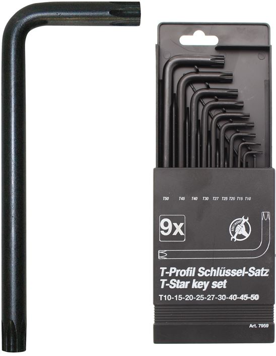 brüniert, in Kunststoff-Kassette, Winkelschlüssel T-Profil (für Torx) T10 - T15 - T20 - T25 - T27 - T30 - T45 - T45 - T50, Abtriebsprofil kurzer Schenkel: T-Profil (für Torx)p ...
