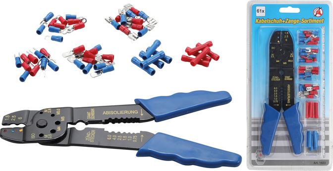 Crimpzange mit Kabelschuh-Sortiment | 200 mm | 61-