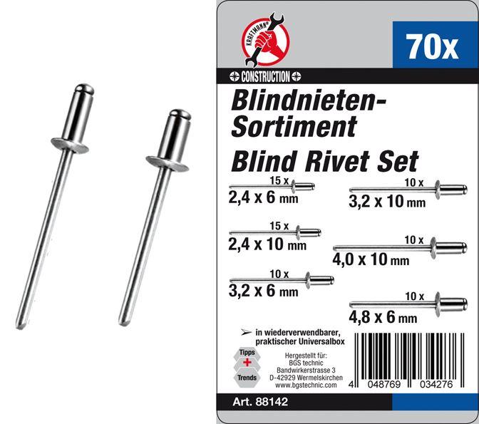 Blindnieten-Sortiment | Ø 2,4 - 4,8 mm | 70-tlg.