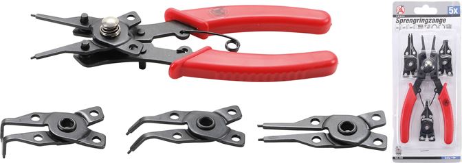 mit 4 auswechselbaren Köpfen, für Innen- und Außensicherungen, 1 Zange, 160 mm, 2 Köpfe, gerade (Außen und Innen), 1 Kopf abgewinkelt, 45°, 1 Kopf abgewinkelt, 90° ...