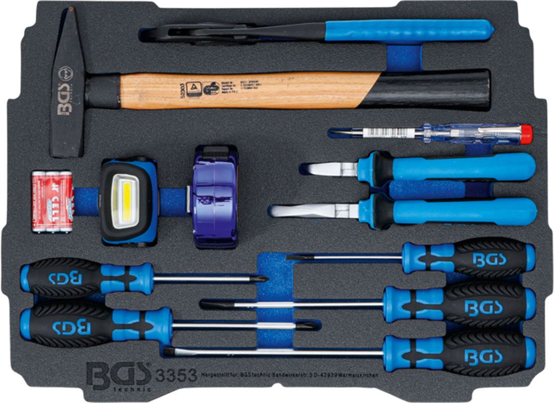Schaumeinlage mit Hammer-, Zangen-, Schraubendreher-Satz, 12-tlg.